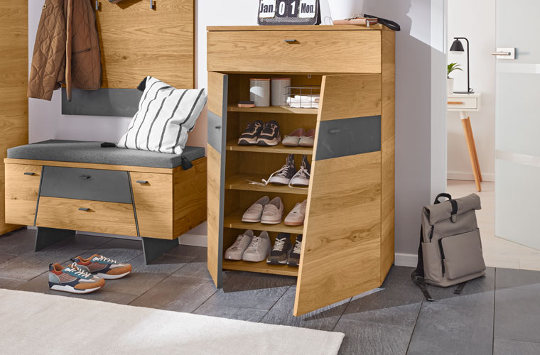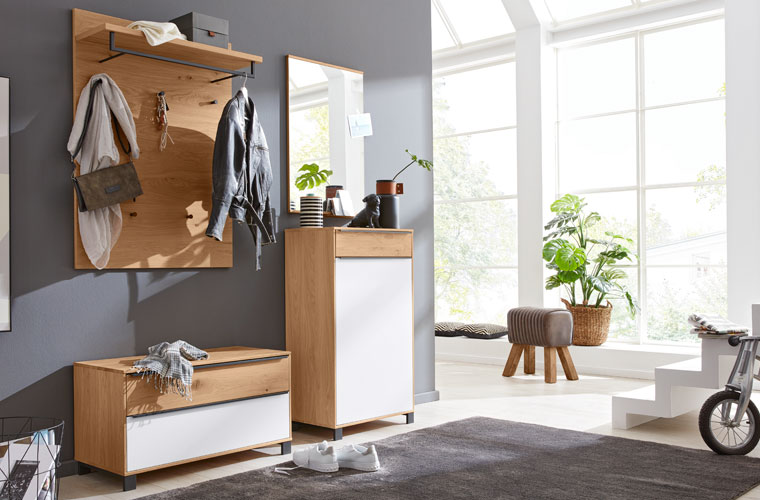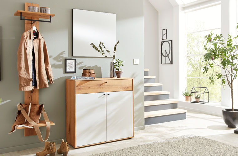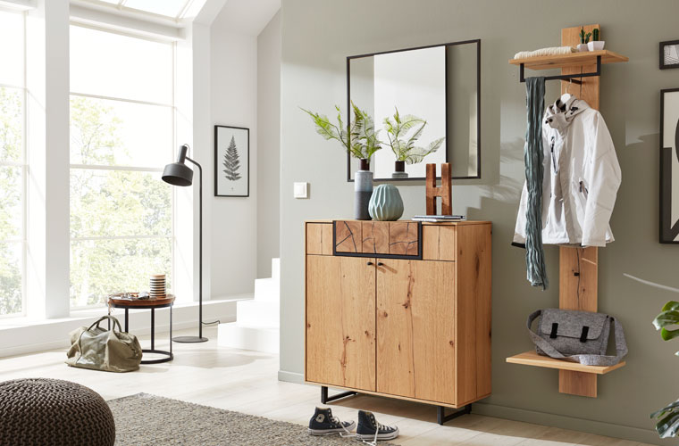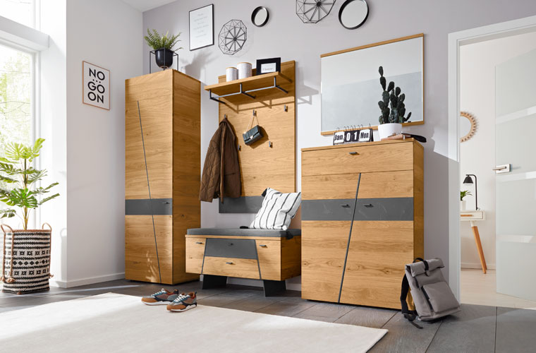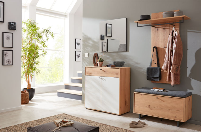 Der Flur ist das erste was ein Gast bei der Begrüßung sieht und der Ort wo man täglich nach Hause kommt — also die Visitenkarte der eigenen vier Wände. Damit man sich direkt heimisch fühlt, sollte es ordentlich sein und eine gemütliche Atmosphäre entstehen. Mit Interliving Garderoben ist das kein Problem. Die Stauraumwunder bieten Platz für Jacken, Taschen, Schuhe, Kleinigkeiten und Dekoration und durch das hochwertige Massivholz wird eine warme, gemütliche Atmosphäre erzeugt.