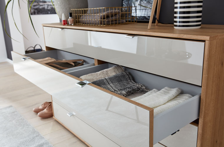Denkt man an einen Kleiderschrank ist das erste und wichtigste Merkmal, dass er viel Stauraum bietet, um alle Klamotten und Krimskrams verstauen zu können. Interliving bietet mehr. Neben ausreichend Stauraum, vielfältigen Funktionen und Zubehör kann man sich auf ein stilvolles Design verlassen, welches sich perfekt in die Raumplanung einfügt. Individualität wird groß geschrieben, denn gerade ein Kleiderschrank sollte sich an seinen Nutzer und dessen Bedürfnisse optimal anpassen. Neben Dreh- oder Schwebetüren verfügen die Interlivingkleiderschränke standardmäßig über Kleiderstangen, Schmuckschubkästen, Glasplatten, ausziehbare Wäschekörbe, Schuhfächer und vieles mehr. Möchte man seinem Stauraum-Star technische Besonderheiten verleihen, kann man ihn mit LED Lichtern in das richtige Licht rücken oder sich für Liane Speech entscheiden und anschließend mit dem Kleiderschrank über Alexa Sprachsteuerung kommunizieren.