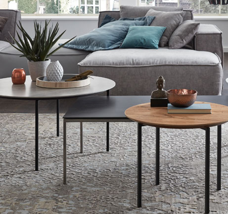 Erst durch den passenden Couchtisch ist das Wohnzimmer komplett. Besonders trendig und stilvoll ist die Kombination aus mehreren Couchtischen verschiedener Höhen oder Formen. Der intelligente Begleiter erzeugt durch einfaches ineinander Schieben eine gemütliche Lounge Atmosphäre.