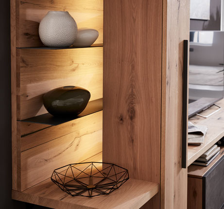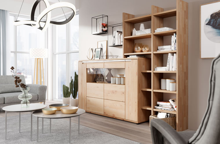 Nachhaltig. Langlebig. Einzigartig. Massivholzmöbel bringen neben diesen Eigenschaften eine Wärme und behagliche Atmosphäre in Ihr Zuhause. Durch die lange Nutzungsdauer und die verwendeten Materialien erreichen die Massivholzmöbel von Interliving eine sehr gute Klimabilanz und sind für jeden das Richtige, der auf stilvolle Nachhaltigkeit setzt. Selbst nach vielen Jahren Verwendung kann man den Möbeln durch Abschleifen und erneutes Ölen oder Lackieren neues Leben einhauchen. Die Einzigartigkeit erreichen sie durch ihre individuelle Maserung des verwendeten Holzes. So wie z.B. die Interliving Wohnzimmerserie 2003 bei der man sich durch ihre charakterstarke Maserung direkt wie Zuhause fühlt. Wer auf Massivholz setzt, kann sich auch auf ein positives Raumklima freuen. Die Holzmöbel nehmen überschüssige Luftfeuchtigkeit auf und geben sie in trockenen Zeiten wieder ab.