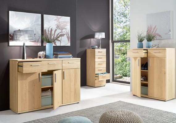 Ob niedrig als Lowboard, für mehr Stauraum als Highboard oder als stylisches Schwebeboard – das Sideboard setzt durch die flexiblen Verwendungsmöglichkeiten moderne Maßstäbe. Längst hat es die globigen Wohnwände abgelöst und bringt Leichtigkeit in die Räume, ohne dabei den Vorteil des Stauraumangebots einzubüßen. Von Holz bis Lack gibt es das Sideboard in verschiedenen Materialien und -kombinationen. Mit Glaseinsatz in den Türen setzt es das gute Geschirr in Szene, als geschlossenes Highboard bietet es viel Platz für alle Sachen, die nicht sichtbar sein sollen.
